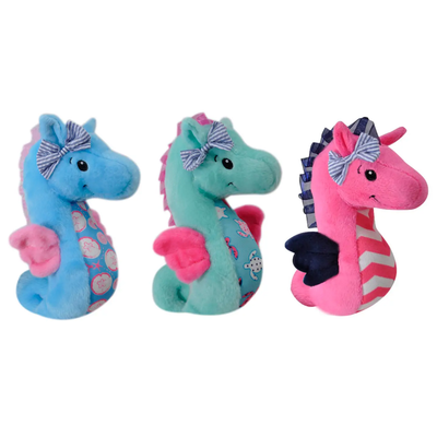 Introducing the 11" (26 cm) Preppy Hannah Seahorse Assortment — the perfect blend of ocean charm and preppy style! These adorable seahorses come in soft, vibrant colors, each with a sweet, stitched face and a signature preppy bow. With their soft bodies and playful design, the Preppy Hannah Seahorses make wonderful companions for any ocean-themed collection or as a fun, cuddly friend.