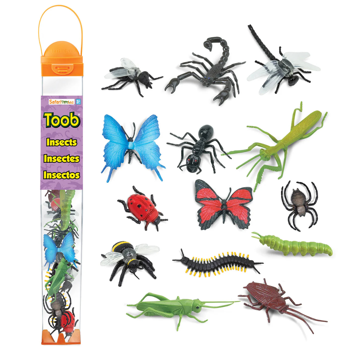 Crawly, squirmy, and a little wiggly, this Toob lets you hold 14 iconic insects in the palm of your hand, including a caterpillar, dragonfly, centipede, grasshopper, housefly, ladybug, spider, honeybee, cockroach, scorpion, praying mantis, ant, and 2 butterflies.
