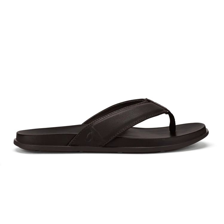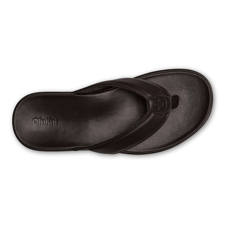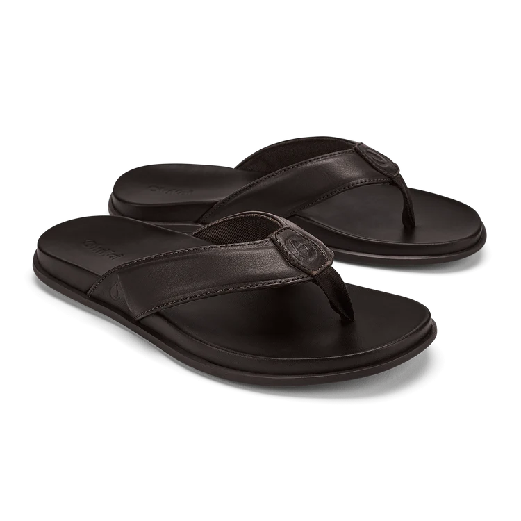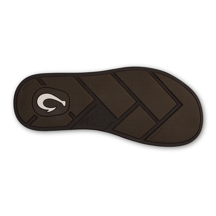 OluKai Craftsmanship: The sandal showcases double-row saddle-inspired micro stitching on the footbed, a handsewn leather toe post, and a cast metal hook logo for distinctive craftsmanship.