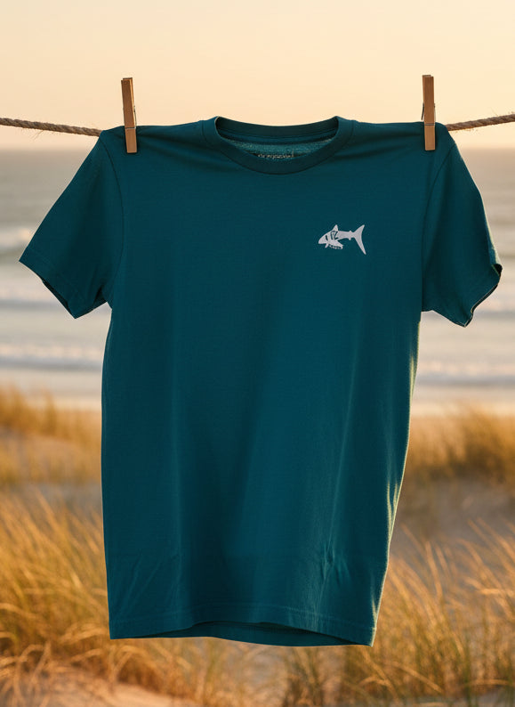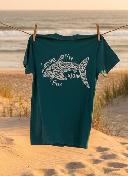 "Leave My Fins Alone" Shark Tee Shirt - Turquoise