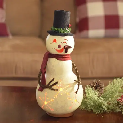 Medium Blizzard Snowman Hand-Crafted Luminary Gourd