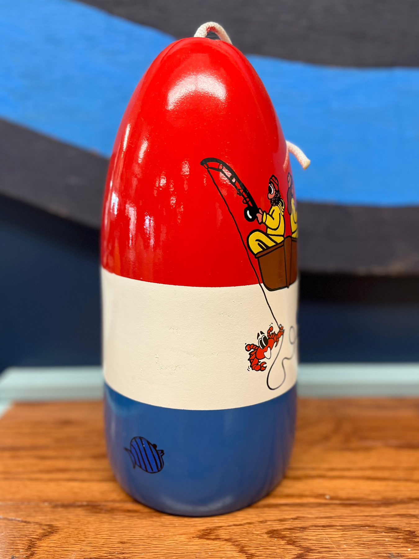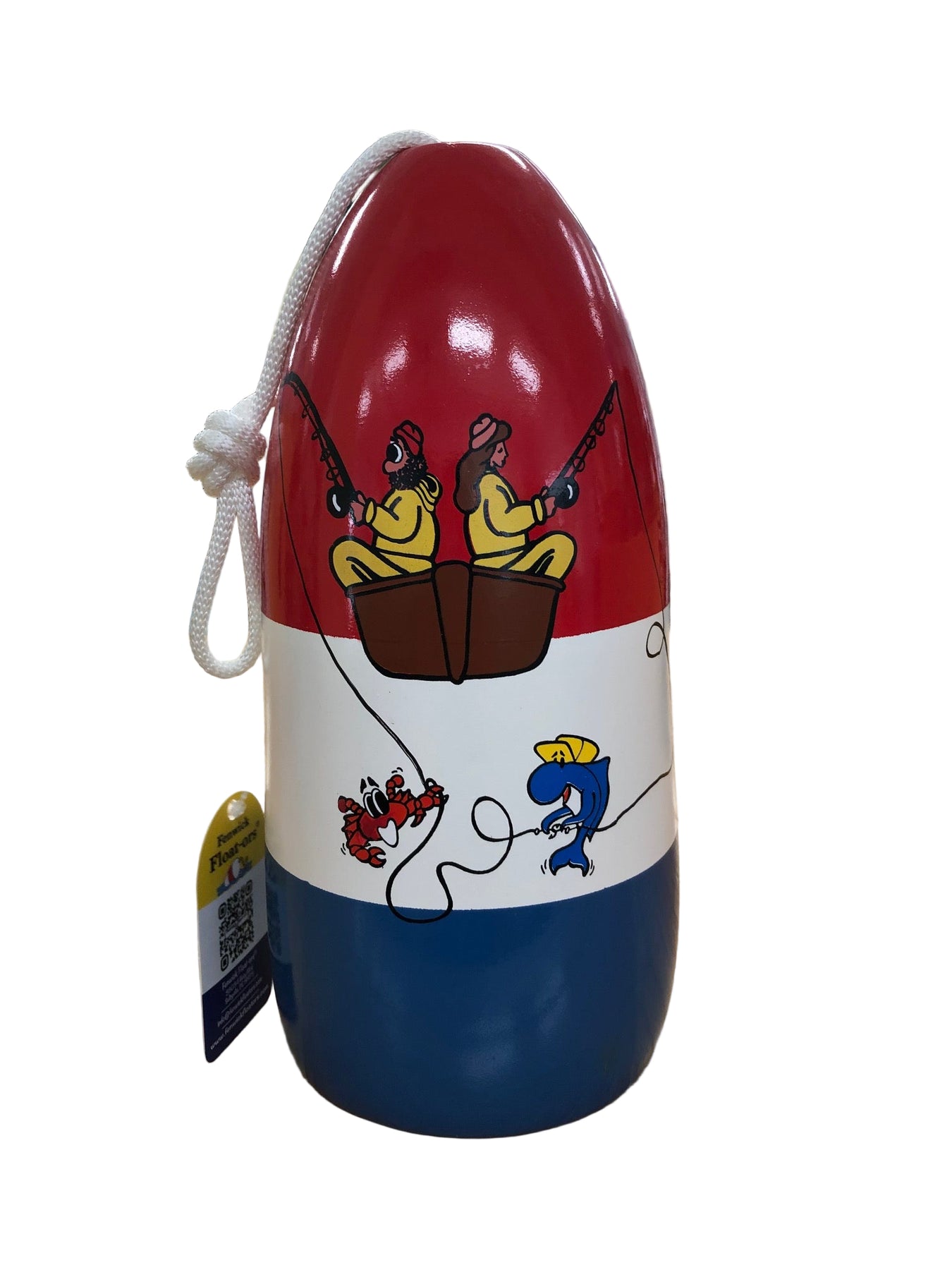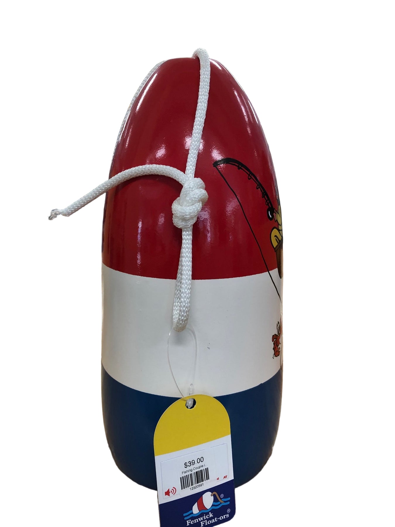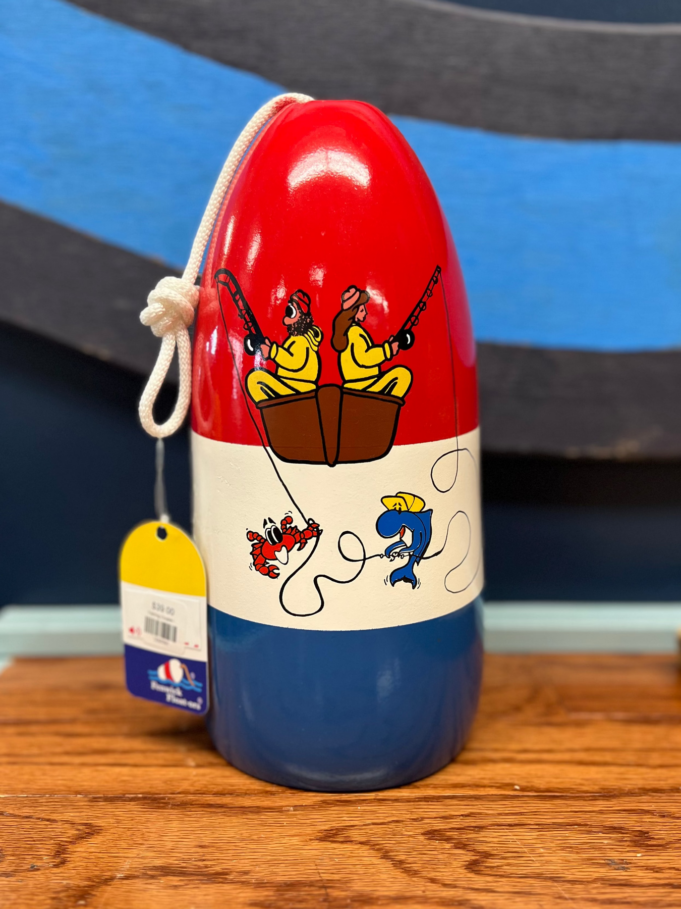"Fishing Couple" design - on Red - White - Blue personalized Fenwick Float-ors® Buoy (Chesapeake Shape (approx. 5" x 11"))