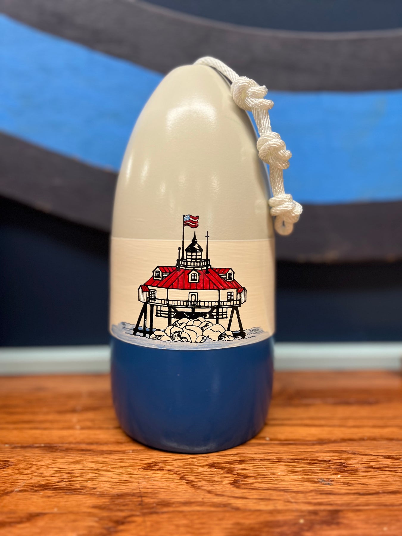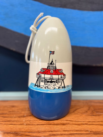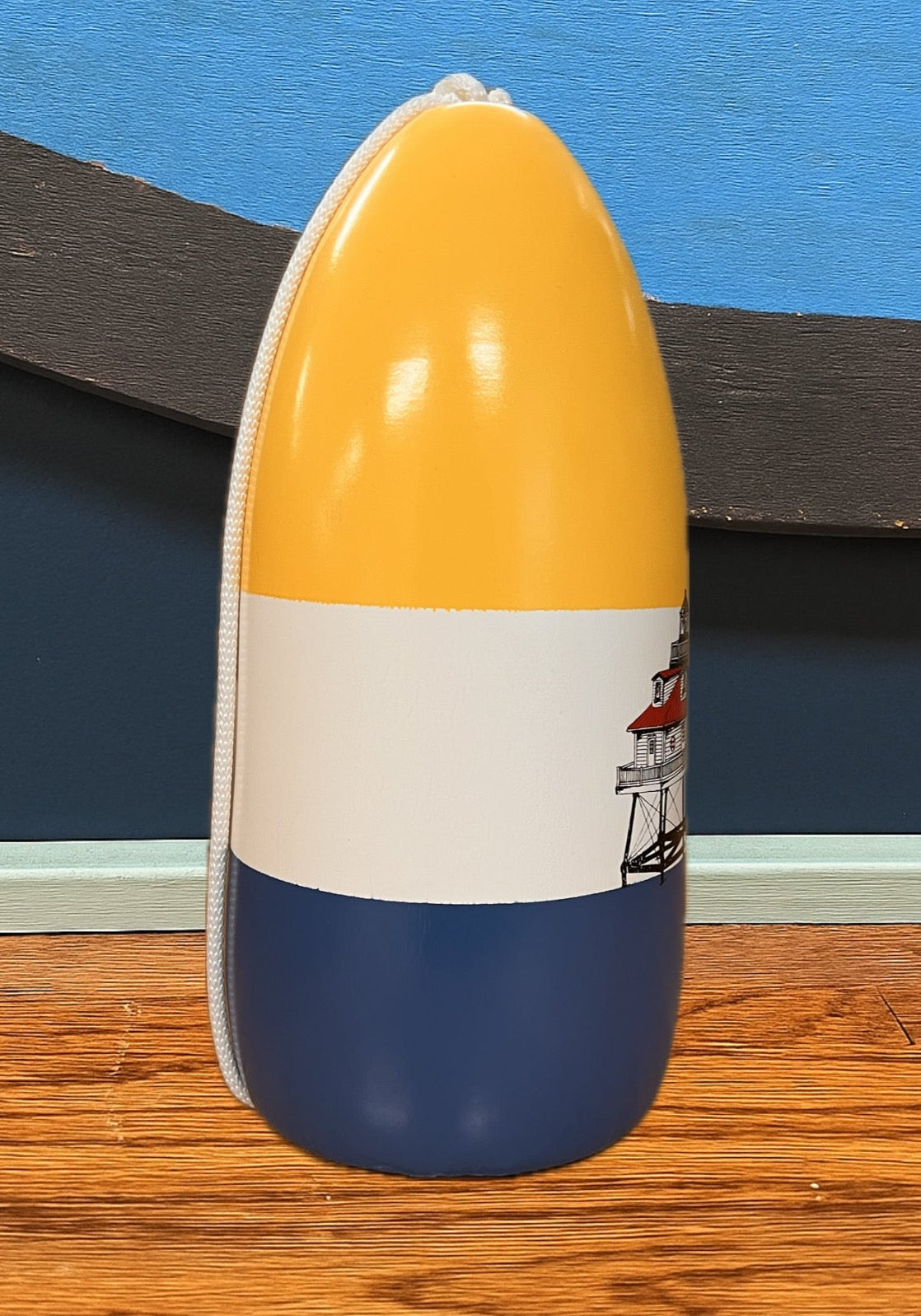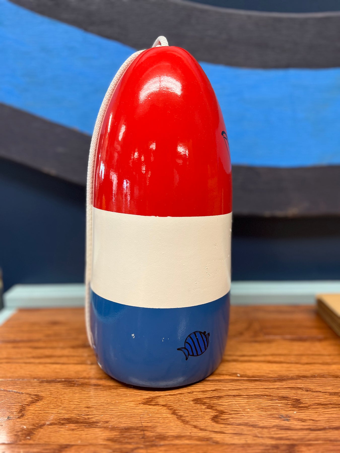 "Fishing Couple" design - on Red - White - Blue personalized Fenwick Float-ors® Buoy (Chesapeake Shape (approx. 5" x 11"))