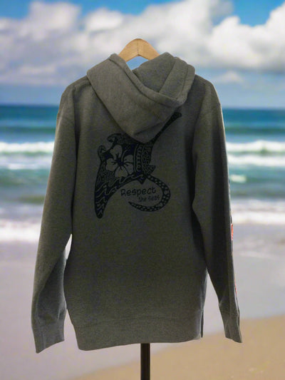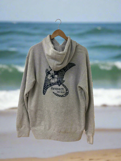 "Respect the Seas" Manta Ray - Heavyweight Hooded Zip Up Sweatshirt - Gunmetal Heather Gray
