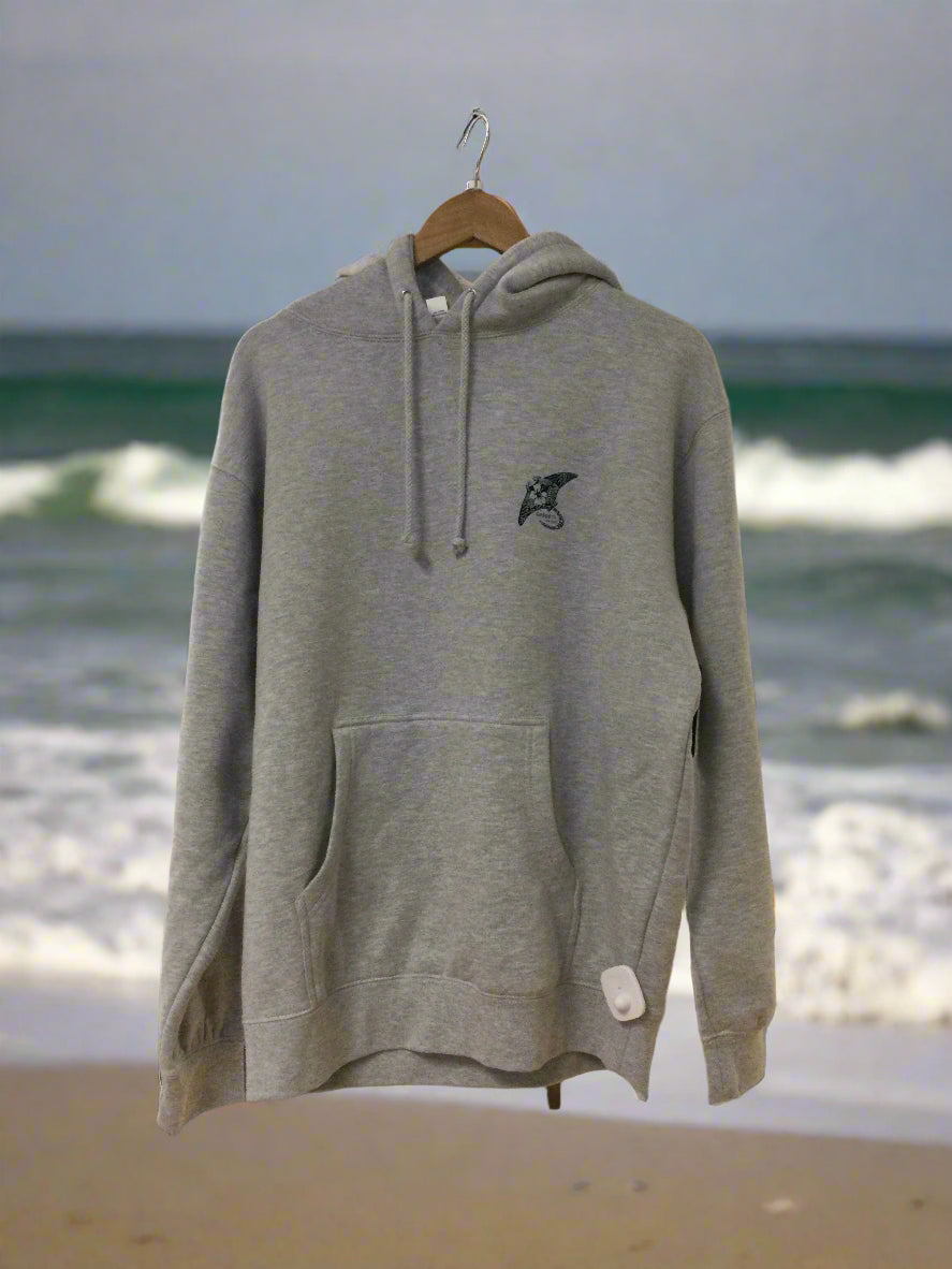 "Respect the Seas" Manta Ray - Heavyweight Hooded Sweatshirt - Heather Gray