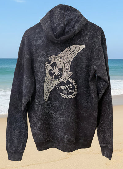 "Respect the Seas" Manta Ray - Wavy Blue Lightweight Cotton Hooded Sweatshirt