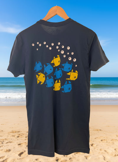 Say it louder "Respect the Seas"! This is where it all started - a basic calling to care about our oceans, the beaches, and its inhabitants. Since you’re here, the giant manta ray is only one of 630 species of rays. Overhunting and other human activity has caused this beauty to land on the endangered list. They weigh around 2600-3000 lbs. and their wingspan can be between 17 and 23 feet wide. Getting caught in fishing nets and ocean pollution are threats to the giant manta ray. While you aren’t likely to see one in our local area, we think you should care about this graceful creature anyway.