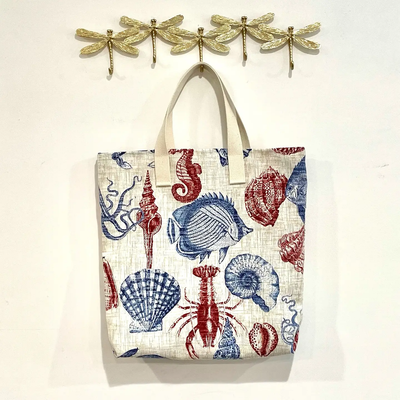 Hand made reusable shopping tote. It’s made of printed designer’s fabric and cotton webbing handles. The handles are made of 100% natural cotton webbing.